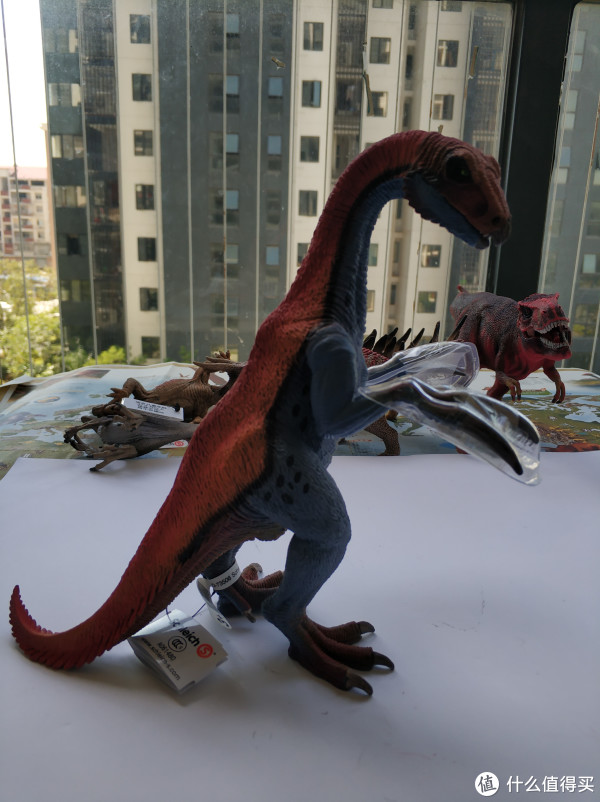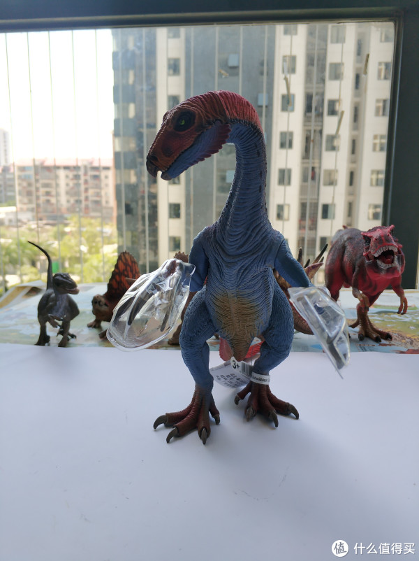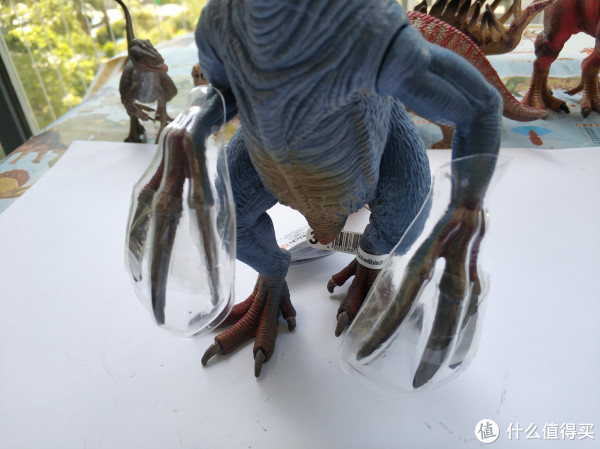 没错,包装就是像上面那样简单,产品信息和商标挂在脚上,镰刀龙的爪子有做保护(以前买三角龙时,头上的角也有保护)。