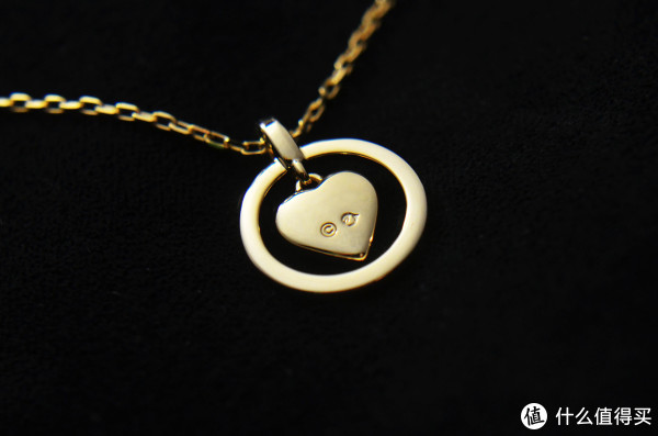 背面是圆润的镀金心形链坠,上面似乎刻着啥字(看不太懂的说),看着像是有个C字形圆形,这镀的颜色,怎么有种土豪金的即视感。。。流水线平滑度倒是不错,没有水晶看着似乎也是挺不错的
