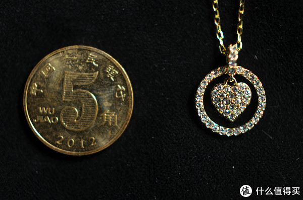 项链大小大概比五毛硬币要来的小,不过可以看到两个都是金光闪闪的哟~~
