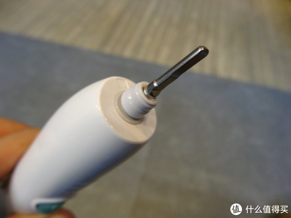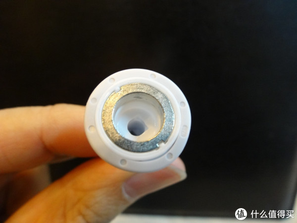 再看看刷柄,或者叫主机,顶部就是连接刷头的金属插头,灰色的应该是密封圈,据说时间长了也顶不住会进水,然后就嗝屁了,所以用好,最好擦干净。