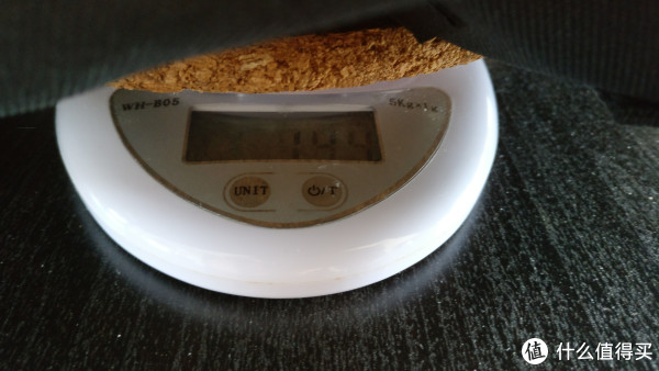 背带重量,没有合适的称,就拿老婆做烘焙用来称面粉的称用一下