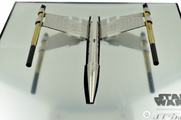 说实话,我本以为是送了4只笔芯,但是发现,原来只有2只,盒子下面是一层银纸,“倒影”成X型的战机形状。