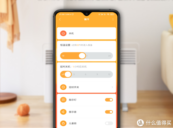 通过米家APP可远程开关机、调节温度、设置定时,以及开/关指示灯、提示音、儿童锁,开启儿童锁后,电暖器控制面板按键无效。通过APP可在18-28℃之间10个档位无级调节,延时关机可在1-12小时无级调节,APP控制更精准,满足不同用户个性化需求。