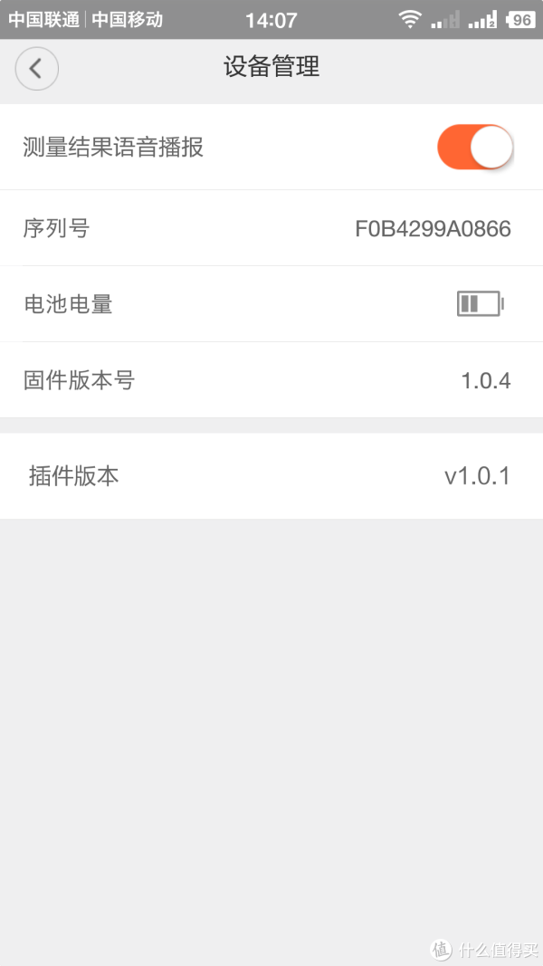 回到米家APP设置里的【设备管理】,除了可以控制血压计语音播报的开关外,也可以看电池电量