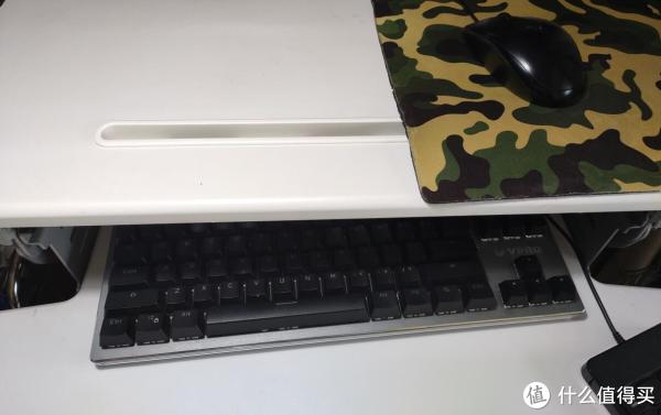 只能把鼠标放到台面上,好在由于托盘托深度够大,可以吧86键盘推到深处,空出的台面用来承托打字时的手腕