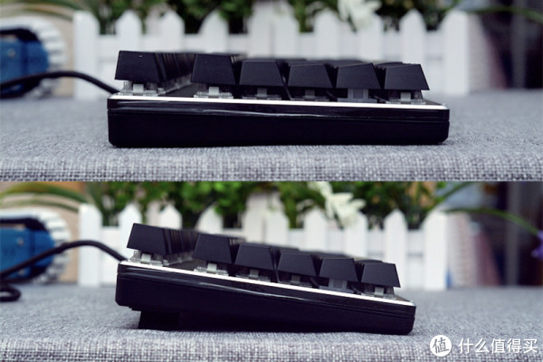 ▲键盘键帽采用OEM高度,底部支架只有一个角度,上图为支起后的效果。