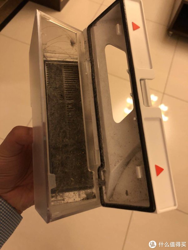 次日傍晚再次清扫,集尘盒中积尘少了2/3,大概也就是个底儿,但仍可以清扫出灰尘和头发,北方的空气情况就是这样,尘土无缝不入