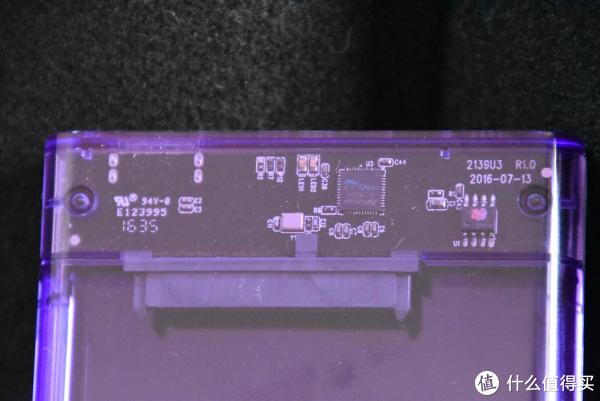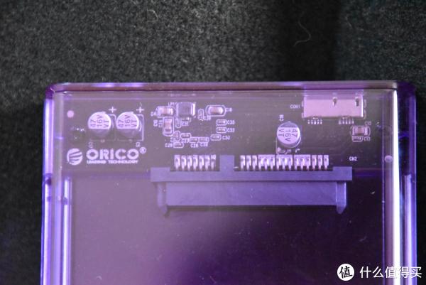 因为是透明的,所以可以看到硬盘盒采用了什么样的芯片和电容。