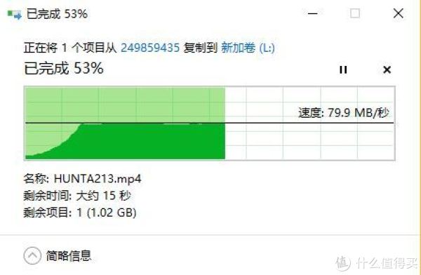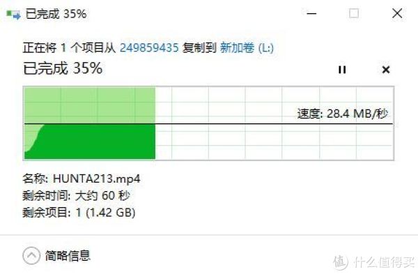 实际写入速度在38-30m/s之间,完全可以接受的,之前的老硬盘盒都只是15m/s左右的晃荡,速度快了近一倍,我非常的满足。(一不小心暴露了车牌号)