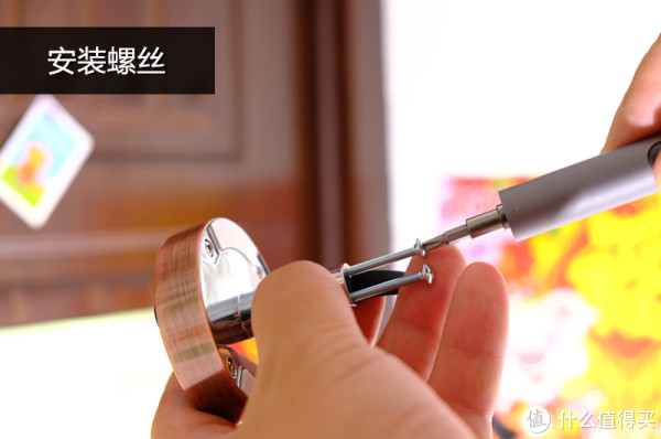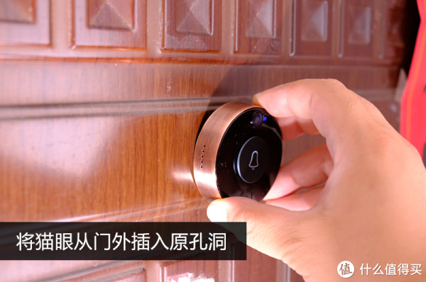 按说明书上的提示,选择合适长度的螺丝拧到猫眼上,在插入猫眼时切记先将数据线穿过防盗门的孔洞。