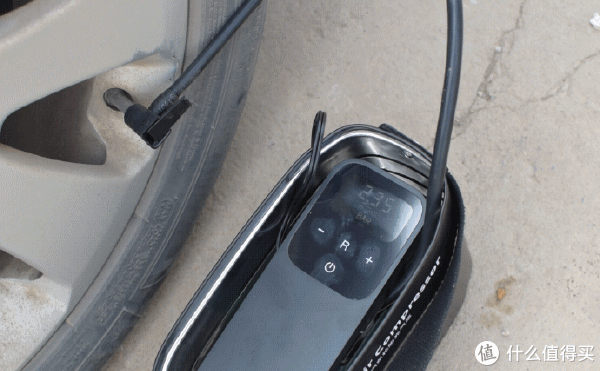 其实充气泵使用还是非常方便的,也很简单,就是给它供电,然后通过内置金属直驱马达驱动气泵产生气体,再通过气管和气嘴输送到轮胎内