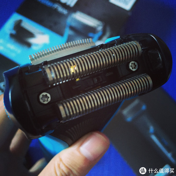 网面打开的操作也是相当容易的,拇指和食指同时按压两侧,网面头就会弹起,再稍微用点力就可以去掉,然后呈现在眼前的就是这样的刀头,做工还是非常棒的!