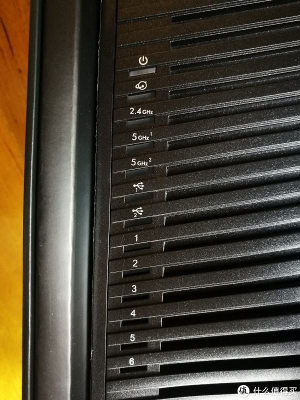 R8500的颜值还算不错,至少不会影响家容,顶部的波浪设计还是挺有特点的,天线上的蓝光也很靓,(如果能呼吸的话说不定还有震慑小偷之神奇功效)。不过体积确实大,重量也比较沉,便携性是基本不用考虑了,谁出门带这么一个巨无霸路由器……放家里的话尽量找一张比较大的桌子或者放地上比较合适。