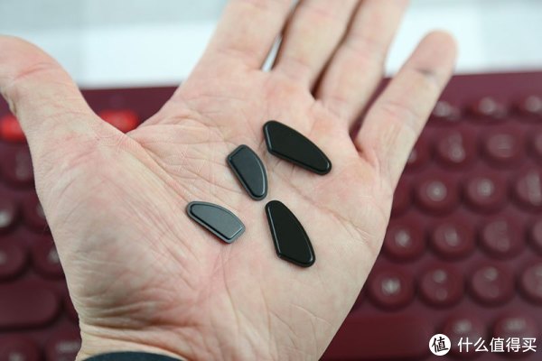 鼠标底部最大的亮点是集成了可更换的脚垫,用户可以根据需要选择不同阻尼的脚垫以获得更好的移动体验,这在鼠标界内并不多见,业内普遍做法都是选择不同材质的鼠标垫来解决鼠标光学定位以及移动阻尼的问题,钛度的这一做法也是进一步提高了鼠标的可玩性。