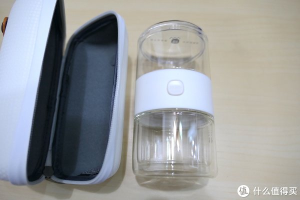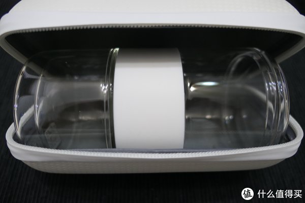 ▲不得不说一下这个用EVA材料做出来的保护套:设计简洁雅致,外表较为坚韧,可对茶杯起到很好的保护作用。另外,我个人比较喜欢手提带的配色,别出心裁。但有缺陷,手提带有一端是可拆卸的(按压纽扣),所以在提整个杯子的时候有掉落的可能性。