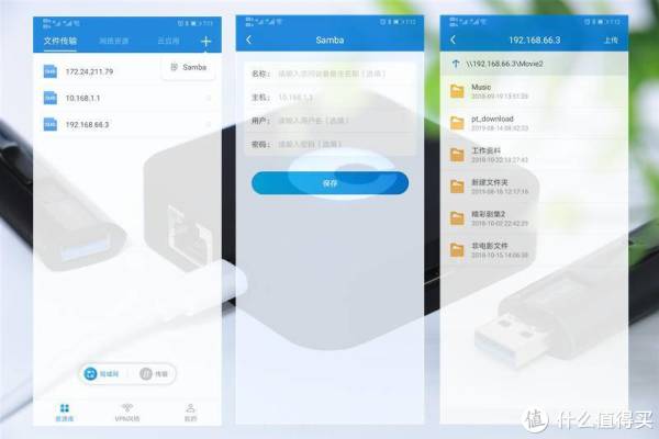 当然如果所列的资源没有所需要的,可以通过点击右上角的加号直接添加samba共享网络,填入主机所在的ip地址以及访问所需要的samba密码即可完成访问。