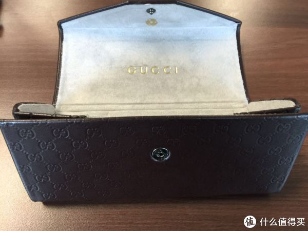 Gucci的三角形眼镜盒,真皮的,手感还不错: