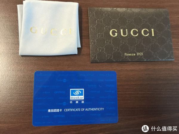 还附带了点其他眼镜布、Gucci卡片(实际上啥也没有)、依视路的卡片说明(卡的背面是度数、散光等信息):