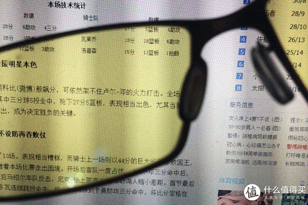 带上它看屏幕,第一感觉,眼前的一切都变黄了。这是意料之中的,因为它得把部分蓝光过滤掉嘛。蓝光是一种很可怕的光,是导致眼睛疲劳,眼睛损伤,头疼,睡眠障碍的主要原因。当然,这里滤蓝光也不是100%把所有蓝光都过滤掉以至于看不到一点蓝色,不过已经足够保护眼睛了。那么变黄之后是否影响视觉观感呢?