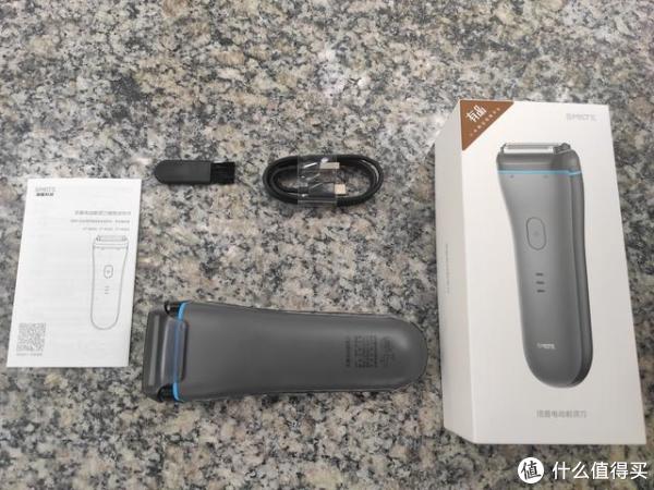 打开略有阻力的包装盒之后,今天的主角就静静的躺在其中,除去须眉剃须刀灵动3系之外,附赠的还有一张永远都没用的说明书、一把清洁刷以及一条充电线,但并没有充电接口。