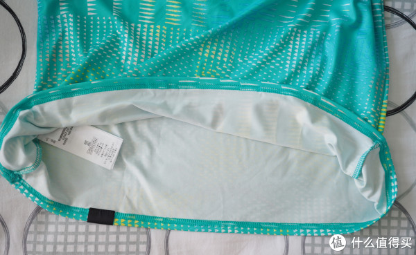 衣服内侧的吊牌,从这里可以看到这件T恤的面料成分:94%聚酯纤维和6%氨纶 ▼