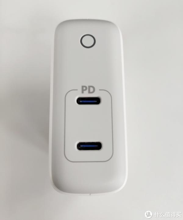USB-C接口舌片为蓝色,上方丝印灰色“PD”字样,代表着该接口支持USB PD快充输出