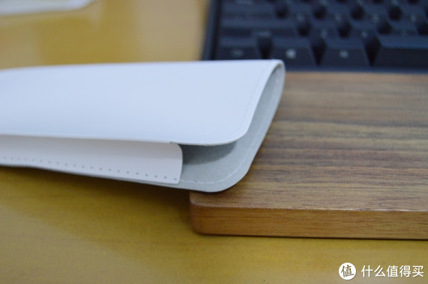 最开始这款收纳的物件拿在手上感觉是硬质纸张做的,在取镜片的时候发现看到内层后才知道是人造纤维的材质,重量很轻▼
