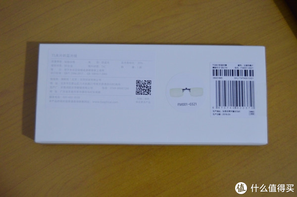 到手就是一个长方形的白色包装盒,上面印有TS夹片防蓝光镜的外观图,左上角有品的LOGO字样比较显眼▼