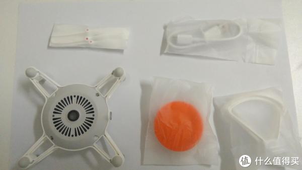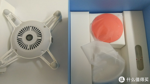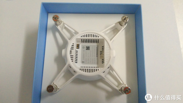 打开蓝色盒子就是主机跟相关配件。盒子里的飞行器是倒装的,让我觉得有种盒子拿反了的赶脚