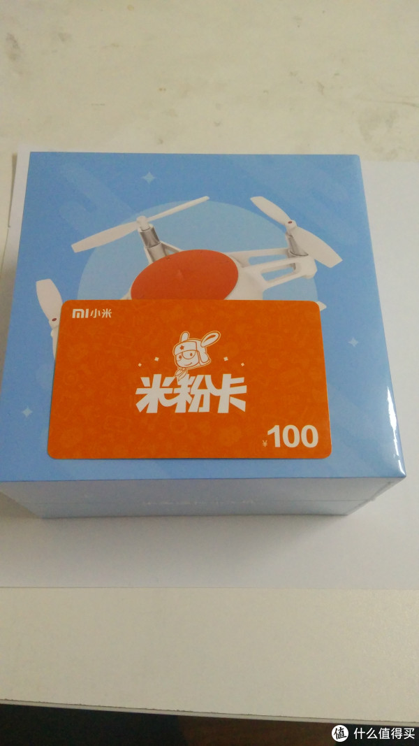 继续拆开快递盒子,就是米兔遥控四轴飞行器的蓝色盒子,第一感觉是好小呀。ps盒子里竟然顺带送了一张米粉卡,也算是意外收获吧。