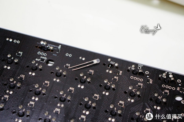 因为PCB没有明确标明灯脚的正负极,一般支持改灯的键盘PCB都注明了灯脚的正负极,查了官网也没有详细说明,本来想咨询官方微博能省点事,估计官博太忙了,当他回复我的时候我已经测试好并且改好键盘了