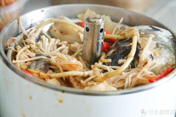 清洗的时候也可以看出,只有细小的食物残渣穿过了提篮的小孔到了下面,清洗时就会方便不少,不过最近一次火锅吃太久了,掉下去的细小残渣在底面粘锅,清洗难度会有一点点增加。