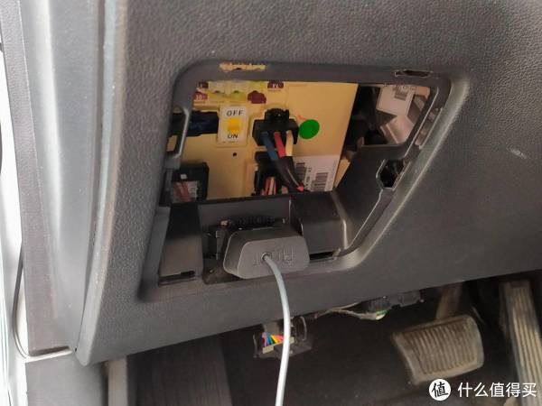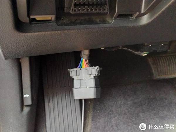 然后是安装OBD取电器。现在的大多数车都具有OBD接口,一般都在驾驶位方向盘下方。由于百路达HUD不读取OBD数据,所以不存在兼容性问题,也不用怕接上取电器后行车电脑报故障,只要有OBD接口就可以放心的插上使用。