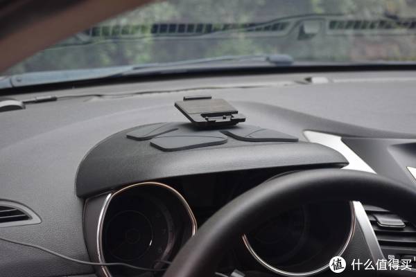 官方推荐的安装位置有两个,一个是中控台正中,另一个是方向盘正前方。刚子的车是北京现代朗动,前挡和中控台之间的高度比较低,放在中控台正中时,屏幕不能完全张开,所以只能安装在方向盘正前方了。