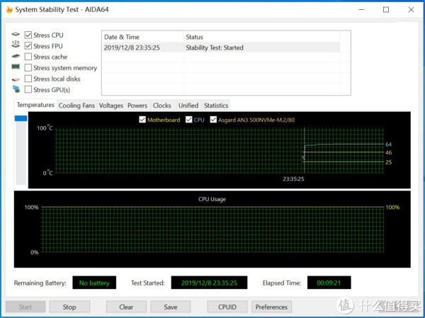 ▼使用AIDA64软件对CPU进行FPU双烤测试,10分钟后温度最高为64℃,看来我真的要换CPU了……