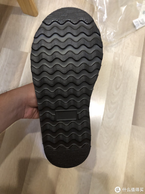(2)质量方面。外观是典型的雪地靴设计,与UGG类似,表面并无复杂的图案。鞋面、侧面、后跟的接缝严实,做工质量好,而且鞋内绒毛丰富,脚感舒适度,保暖效果好。同时鞋底采用EVA发泡材料,重量轻巧灵便,走路不费力。