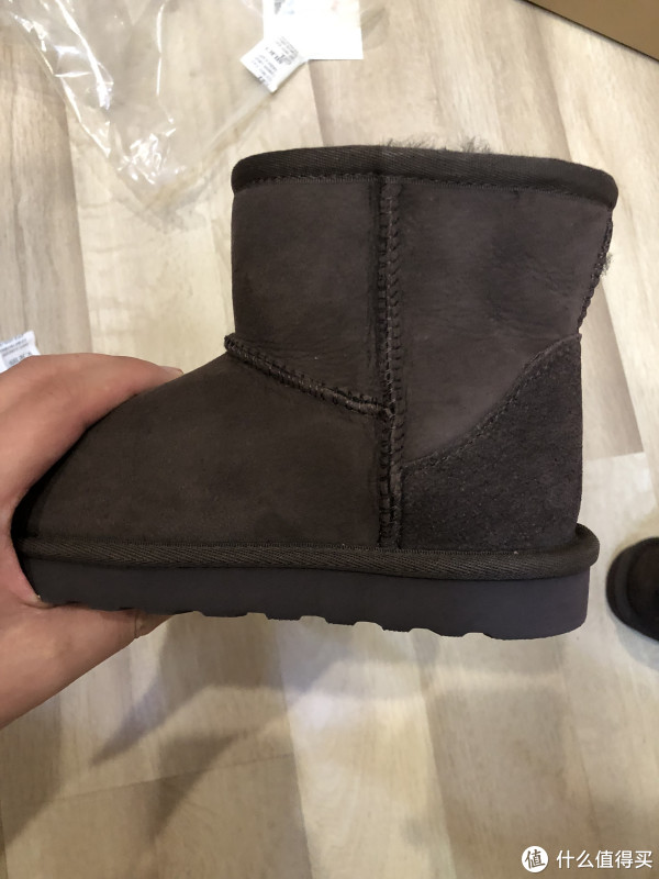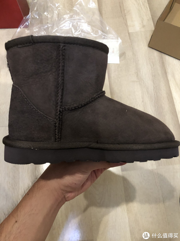打开鞋盒,两只雪地靴分别用塑料袋独立包装: