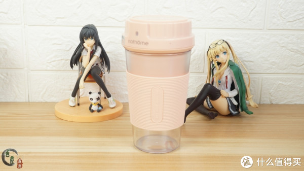 北欧欧慕便携式果汁机有二种颜色,一种是粉色的,一种是白色的。我这里是粉色款,产品采用了PC材质,安全又健康,而且在杯身上有防滑胶垫包裹,方便用户拿握。