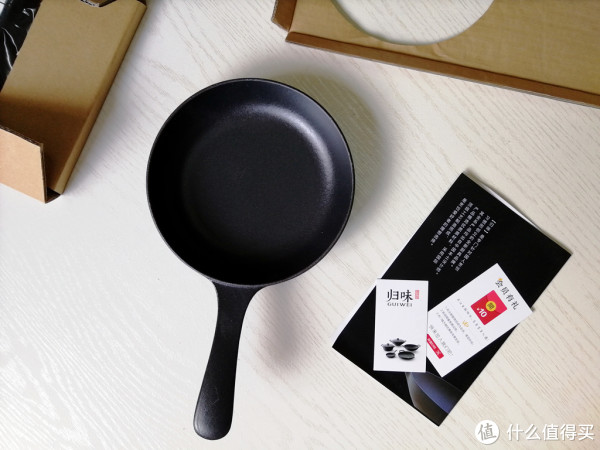 煎锅通体为铸铁材质 ,坚硬厚实,因此厂家并没有采用特殊的保护措施,仅有简单的两张硬纸壳聊做保护。好在锅具确实真材实料,完全没有一丝划损。