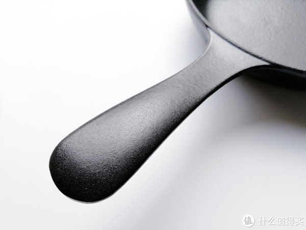 铸铁锅一般都采用铸模技术,一体成型,这款煎锅也是如此,手柄和锅身都是铸造成型,紧密相连,比较结实。不过,在后期加工中,却没有为煎锅装上防烫手柄,烹饪时需要配合隔热垫,才能正常使用,比较麻烦。笔者还是更喜欢装了防烫手柄的铸铁锅,使用会更方便一些。