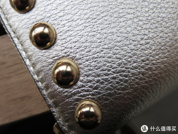 铆钉来张特写,顺便可以清楚看清皮的纹路-荔枝纹,手感大家可以自行想象,软软的。