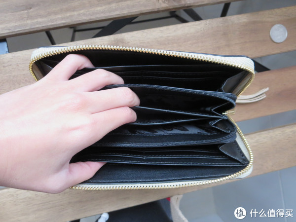 七!!!层!!!!还没考虑卡位!!!手指头都不够掰有木有!细看你会发现,中间两个大隔层和零钱袋里的两个隔层,都是风琴状可以拉开,扩大了装东西的空间,但是这又带来了一个问题!