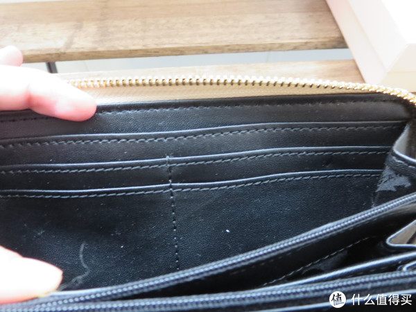 两侧一共8个卡位,差不多够用了。卡位两边有大钞位,然后中间还有两层可以装装乱七八糟。什么,看起来并不如何能装嘛?那是因为内里的拉链还没打开!如果你看商品图,看起来也就是这样的,你就会被蒙蔽!请看下图!
