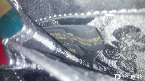内里的烫金logo,看起来还是对得起轻奢这俩字儿的。这张图还能看得到走线和内衬花纹,美美哒。