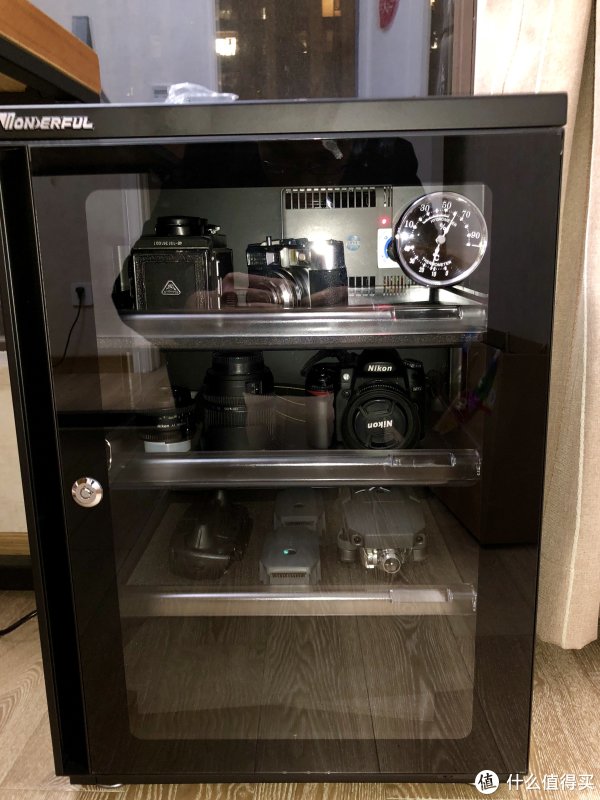 总而言之,这款防潮柜做工还可以,空间利用度较高。同时采用物理吸附原理,后期损坏风险较低。适合像我这样的器材小玩家用来保管祖传家当。