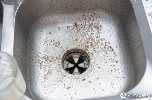 下面的残渣也很碎,把骨头打成这种效果,可以直接排入下水道了,根本不会堵塞下水道。对了,大家要注意下,大骨不要直接投入垃圾处理器,我这边虽然没有测试,但是我感觉肯定会过载。万一大家在使用过程中垃圾处理器过载保护了也不要担心,在机器的底部有个红色的保护按钮,轻按下就可以恢复启动。