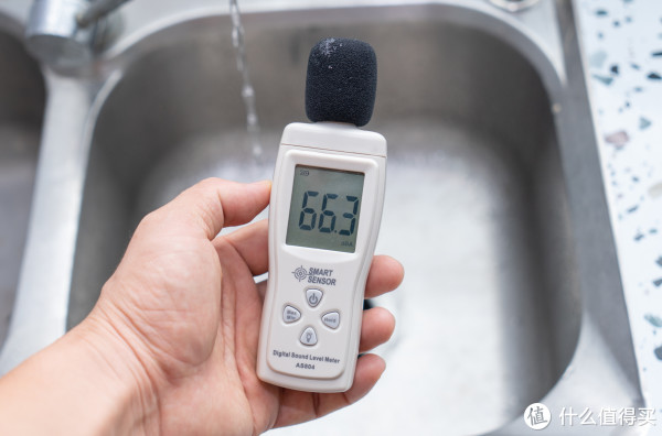 云米厨房垃圾处理器的噪音不是很大,单纯只打开水龙头时噪音为66.3db,再打开垃圾处理器,等垃圾处理器完全启动起来之后,机器的空转噪音仅有70db,我看网上很多其它小伙伴的测评,不少品牌的垃圾处理器空转噪音都能达到85db以上。处理垃圾时的噪音就没怎么有参考性了,因为不同垃圾的噪音有比较大的差别,处理青菜时噪音小一些,处理骨头、贝壳时声音要大一些,不过因为机器运行时间短,这些噪音都可以接受。
