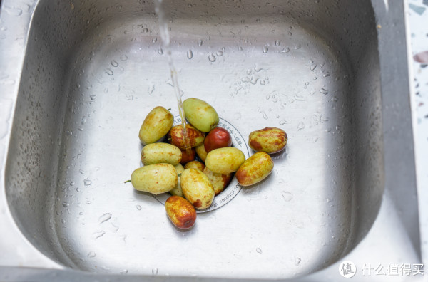 夏秋时节水果比较多,再用枣子来测试一下处理果核、果皮等垃圾的效果,把这些枣子全都投放进去,只听噼里啪啦一阵,枣子全都消失了。云米这款垃圾处理器拥有智能反向功能,大量垃圾进入研磨室也不会卡机。