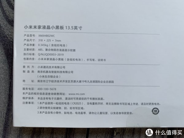 背面印着液晶黑板的参数,生产厂家地址以及注意事项。