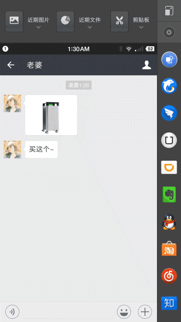 一步在朋友圈发 9 张图片、一步分享你的文字至微博、一步拖拽图片至淘宝以图搜图、一步分享便签、联系人、文件、日历、链接……人生苦短,能 1 步走完的,绝不多走弯路。